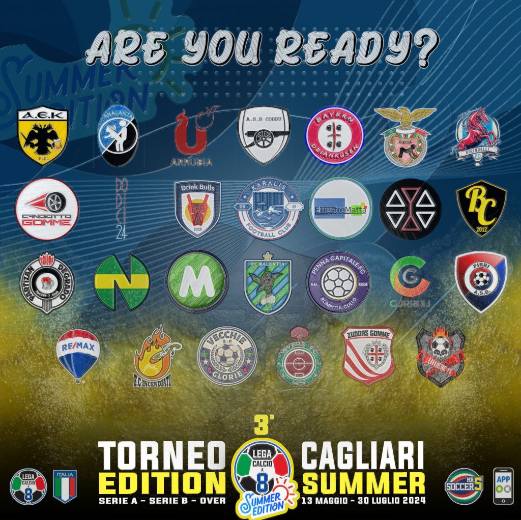 Borussia Cagliari: Pietro Cau presenta anche quest’anno una formazione giovane che ha fatto molto bene sia nell’estate scorsa e naturalmente anche nel recente campionato invernale (sfiorando anche il titolo): in difesa oltre il presidente ci saranno i combattivo Edoardo Camba e Francesco Orrù; è poi da registrare il rientro in pianta stabile di Stefano Farris che durante la stagione invernale ha collezionato poche presenze a causa di un lungo infortunio: a centrocampo tanti ragazzi rapidi e tecnicamente preparati come Alessandro Marcialis e Carlo Cau (per citarne alcuni); non può mancare la vivacità e la velocità supersonica di Paolo Cabiddu, e la qualità immensa di un’ala come Riccardo Pisano; tra i pali ci saranno il giovane promettente Francesco D’Alberto e lo storico affidabile Matteo Scarano.
