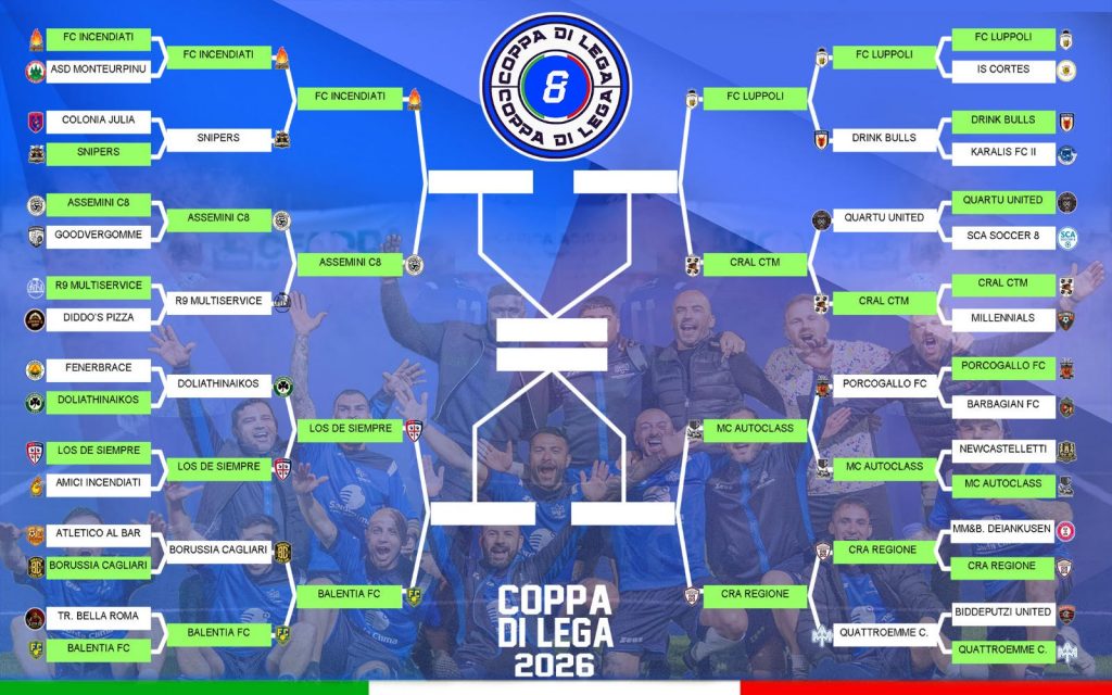 La Coppa di Lega entra nella sua fase più calda: archiviati i primi due turni, sono ufficialmente note le otto squadre qualificate ai quarti di finale. Gli incroci tra le varie categorie (Serie A, Serie B, Serie C e Over35) hanno regalato sfide di grande interesse, tra risultati attesi e clamorose sorprese che hanno acceso il torneo.