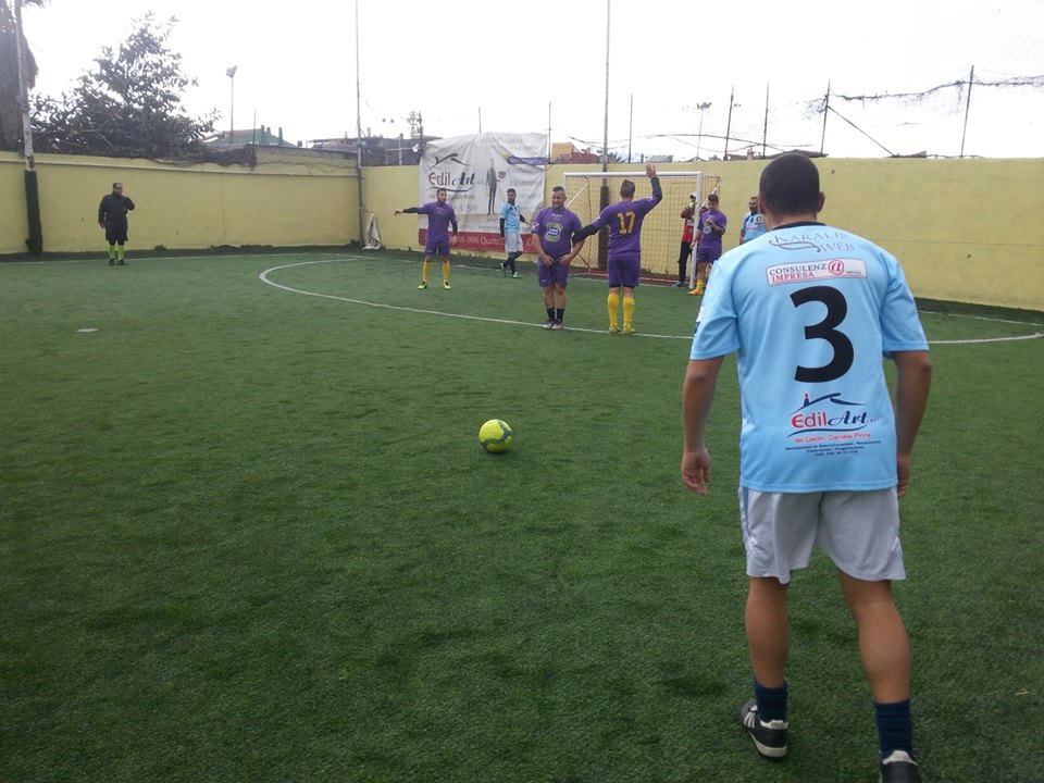 Dopo appena tre minuti sul cronometro i celesti hanno subito un opportunità clamorosa: l’assist di Paderi è con il contagiri per Sitzia che appostato sul secondo palo calcia a botta sicura ma Sarigu è a dir poco miracoloso e gli dice di no con un intervento di puro istinto. Poco dopo lo stesso Sitzia fa da sponda per la botta di Orru’ che trova pero’ ancora le mani protese di Sarigu a respingere la sfera. Dalla parte opposta ci prova Pedditzi dalla distanza, Passerini fa sua la sfera in due tempi senza grossi patemi. L’azione seguente coincide con la rete che sblocca la gara: l’assist è di Orru’ per Sitzia che sotto misura apre il piattone e spedisce la sfera in rete, 1-0. I celesti potrebbero raddoppiare subito dopo ma Fontanarosa colpisce un palo che grida ancora vendetta, incredibile! Ne approfittano i viola che con Asunis pareggiano i conti, quest’ultimo dalla distanza beffa Passerini che in quest’occasione non appare particolarmente reattivo, 1-1. Poco dopo bell’iniziativa di Rossi, gioca di suola e serve splendidamente Aramu che pero’ calcia troppo centrale da ottima posizione, Passerini si ritrova la sfera praticamente addosso. Sono di nuovo gli uomini di Pilleri a riportarsi in vantaggio, Sitzia apre il gioco per Fontanarosa che questa volta fa centro, 2-1. Aramu non ci sta e con una conclusione mancina delle sue pareggia subito i conti, 2-2. Non c’e’ un attimo di respiro, manca poco al termine del primo tempo ed assistiamo ad altre due reti, entrambe targate Orru’ che con due conclusoni dal limite, una di destro ed una di sinistro porta il punteggio sul 4-2. Si va cosi’ a bere un tè caldo con l’Atletico Nacional sopra di due lunghezze. Ad inizio ripresa Aramu con una sassata mancina accorcia il punteggio sul 4-3, è la sua doppietta personale. Dalla parte opposta regalo di Pedditzi in fase di disimpegno, fuga di Sitzia che pero’ non ne approfitta, Sarigu coi piedi in uscita gli nega la gioia del goal. Ci prova Orru’ su calcio piazzato ma il numero ventiquattro in maglia celeste trova solo la barriera. Sarigu è strepitoso e continua a respingere tutto, si supera anche su di un bel diagonale di Sitzia. Sul fronte opposto Aramu in campo aperto ha sul mancino la sfera del pari ma da due passi si incarta e non riesce ad imprimere forza al tiro. E’ il preludio alla rete del pari che arriva nell’azione seguente: Asunis inventa un assist geniale per Aramu che sul secondo palo non puo’ fallire l’appuntamento con il goal, 4-4. Ma gli uomini di Pilleri non si scompongono piu’ di tanto e sugli sviluppi di un calcio piazzato (in foto) trovano la rete del definitivo 5-4: combinazione Schirru-Paderi-Sitzia, con quest’ultimo che sul secondo palo infila in rete, Sarigu non puo’ farci nulla. L’ultima opportunità è sui piedi di Asunis ma il suo mancino trova l’opposizione di Passerini che si salva in corner. Nei tre minuti restanti non succedera’ piu’ nulla di rilevante fino al triplice fischio di Antagonista che pone cosi’ fine alle ostilità, vince l’Atletico Nacional, ma gli applausi vanno anche ai loro avversari per aver disputato cinquanta minuti di grande orgoglio!