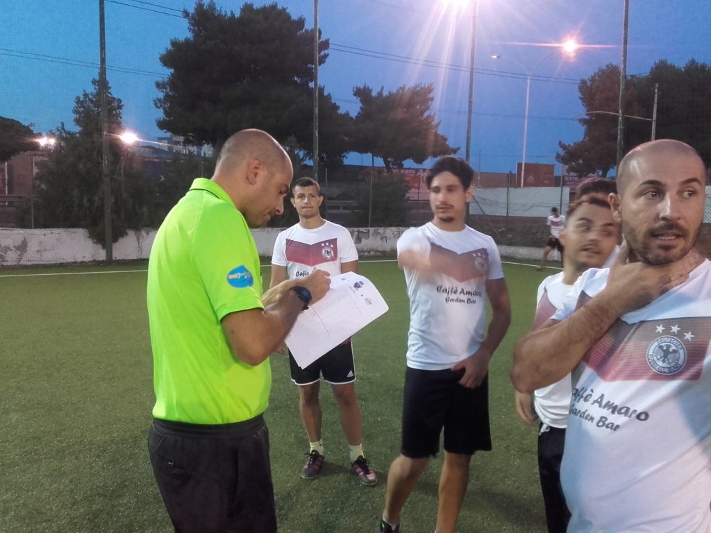 Manca meno di un minuto al termine, Saviola lavora bene una palla sulla mediana,trova lo spazio per liberare il destro,calcia forte e rasoterra e la sfera si spegne alle spalle di Fokara,ingannato anche da una deviazione. Esultano gli uomini di Foschini che volano in semifinale Standard vincendo una partita incredibile che li vedeva soccombere per tre a zero nei primi 20 minuti; si disperano invece i bianchi capitanati da Frau, incapaci di capitalizzare il vantaggio massiccio e meritato conquistato nei minuti iniziali,e calati incomprensibilmente nella seconda frazione. Il New Erba Life soffre maledettamente le incursioni di Mallus e l’estro di Monni e Schirru: infatti Genoese, Vargiu e Camboni sono stretti nella morsa iniziale e stentano a far ripartire l ‘azione da dietro;davanti, la decisione di spostare il capitano Foschini come boa d’attacco sembra non dare grandi risultati anche perche’Piras e Lumia sono concentratissimi e non commettono nessuna sbavatura. Sembra una gara ormai segnata ma negli ultimissimi minuti del primo tempo Melis,semplicemente strepitoso,con una doppietta capolavoro, suona la carica ai suoi che nel secondo tempo completeranno l ‘opera.