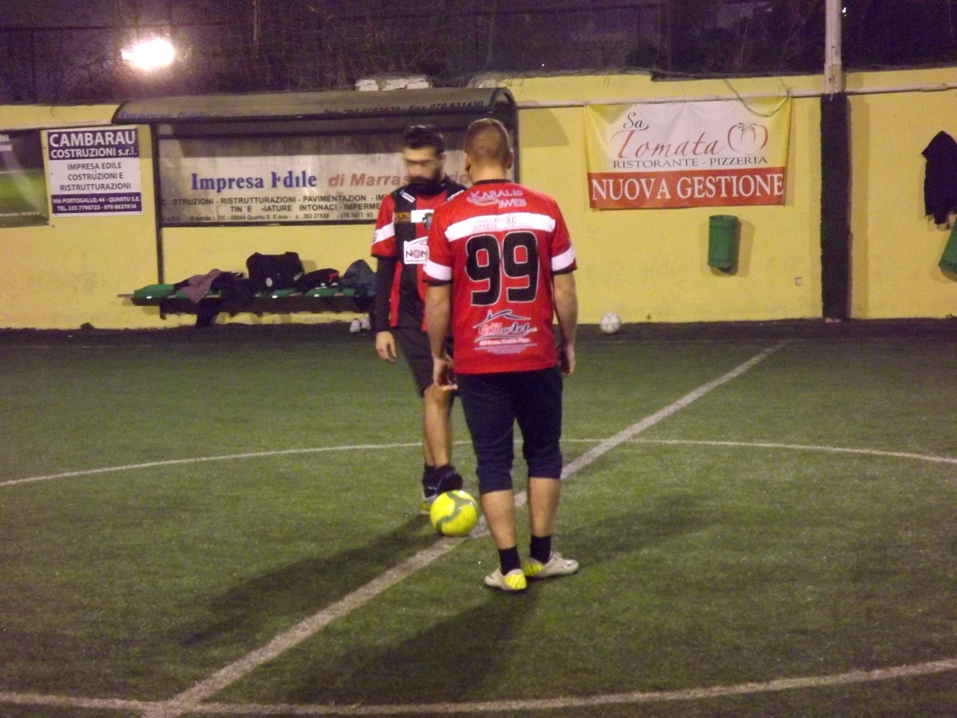 Edil Line è con cinque giocatori a disposizione, tra i pali Cappai sostituisce Xaxa, mancano anche Fadda, Cocco, Nurchi e Desogus, mentre nelle file di Imaginarium non sono presenti Calabretta, Solinas, Roberto Mura, Mascia e Porcheddu, rientra Alessandro Mura. La prima azione degna di nota è una cavalcata a tutto campo di Cara, il numero 7 rosso-nero si beve Caboni, supera Secci in velocità ma si allunga la sfera che finisce a lato di poco. Il buon avvio di Edil Line mette a disagio una Imaginarium contratta e abbastanza imprecisa, i rosso-neri di Xaxa mantengono il baricentro all’altezza della metà campo, hanno il possesso palla e cercano di penetrare la folta difesa nero-azzurra. Sornioni gli uomini di Mura, Imaginarium appena ne ha l’opportunità si lancia negli spazi per ripartire, ed è incredibile l’occasione del possibile vantaggio fallita da Marroccu, sugli sviluppi di un contropiede a tre condotto con Mura e Pilo, il giocatore riceve da Mura e davanti alla porta, con Cappai ormai superato, calcia clamorosamente a lato. Marroccu ha però l’occasione per rifarsi qualche minuto dopo, avanza per vie centrali, nessun difensore avversario gli fa opposizione e allora Marroccu è libero di calciare a rete, da fuori area, destro a mezza altezza sul secondo palo. edil Line reagisce, alza i ritmi, sospinta da un Picci in forte crescita, proprio il numero 10 prima si vede murata una conclusione a botta sicura da pochi passi da Pilo, quindi colpisce il palo su una ripartenza centrale, superando Caboni e anticipando l’uscita fuori area di Secci. Non sono molto fortunati i rosso-neri, anche Pinna centra il palo con un diagonale dal limite dell’area destro, quindi ci provano dalla distanza Cara e lo stesso Pinna, Secci però è attento. Con cinismo, Imaginarium regge al forcing avversario e nel giro di un paio di minuti trova due reti, il 2-0 origina da un recupero di Marroccu su Picci sulla propria tre quarti, il 10 neroazzurro scappa via sulla destra, mette al centro per Altieri che gira in rete dal limite dell’area, con la difesa rosso-nera scoperta; sempre Marroccu è protagonista nel contropiede che frutta il 3-0, uno scambio per vie centrali con Altieri e rasoterra vincente dal limite dell’area. Nero-azzurri vicinissimi poi al quarto gol, Marroccu ispira Caboni sulla sinistra ma Cappai è bravo a opporsi, e sul rovesciamento di fronte Edil Line riduce le distanza, Picci ingrana il turbo sulla destra e serve un ottimo invito per Cara che trafigge Secci e una difesa, quella nero-azzurra, fattasi trovare scoperta. Allo scadere, Edil Line potrebbe ulteriormente accorciare il passivo, duetto rapido sulla sinistra Pinna-Lisci-Pinna e girata dal limite dell’area respinta non senza difficoltà da Secci.