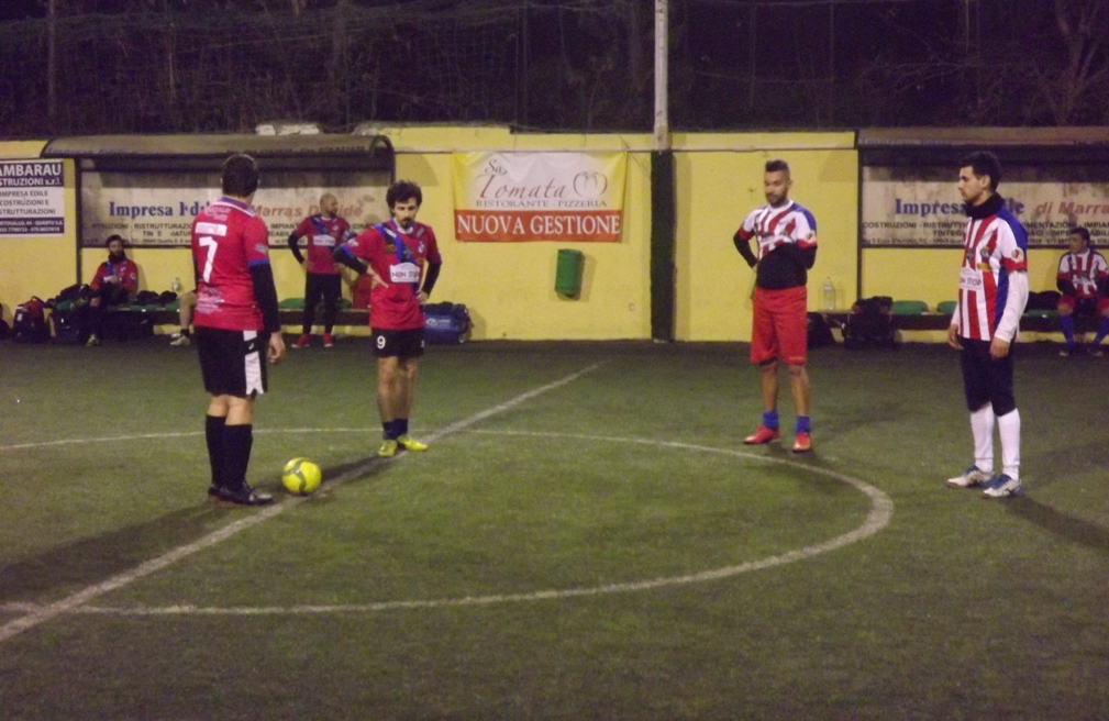 Permaflex Quartucciu senza Piras, Bazzato e Picciau mentre Atletico Panzerotti ha Arrigo squalificato e deve fare a meno anche di Durzu, rientra però Selis. Avvio di gara tattico, è Permaflex a prendere in mano il controllo della palla ma le prime occasioni da gol le crea Atletico Panzerotti, Maxia impegna Serra con uno spunto improvviso sulla destra, poi su ripartenza avviata da Masala sulla sinistra, il diagonale di Montisci viene deviato in corner. Poco dopo, i ciclamini passano in vantaggio, Serra respinge una conclusione dalla distanza di Maxia, Puddu è lesto nel riprendere e insaccare da posizione ravvicinata con un delicato pallonetto. Il team di Arrigo va vicinissimo al raddoppio subito dopo, Montisci sfonda al centro tra due avversari ma Serra è bravissimo a opporsi al tiro dal limite dell’area. Difesa solida, corazzata, ed efficace gioco di rimessa, con queste armi Panzerotti rende arduo il cammino alla Permaflex, la quale comunque giunge al pari grazie a uno spunto personale di Zara, scatto sulla destra e rasoterra fulmineo sul primo palo, palo-rete, sorpreso Melis. Alla ripresa del gioco, Atletico Panzerotti ottiene un calcio di rigore per netta trattenuta di Zara ai danni di Mascia, lo stesso Mascia si incarica della battuta e trasforma, 2-1. La risposta di Permaflex è immediata, è ancora Zara a riportare in carreggiata i bianco-rossi con un altro colpo da biliardo, diagonale rasoterra sul palo lontano, senza subire alcuna opposizione dai distratti difensori avversari. La partita si fa tattica ed equilibrata, Permaflex prova a forzare tempi e pressione, e su punizione di Zara dalla sinistra, una deviazione di Falqui viene scongiurata dal palo esterno, in corner. La pressione esercitata dal team di Rossi sfocia nel gol del 3-2, al termine di un batti e ribatti confuso sulla tre quarti, un rimpallo favorisce Matta che avanza sulla destra, serve Zara che dal limite dell’area non dà scampo a Melis, palla all’incrocio dei pali. Atletico Panzerotti si affaccia nei pressi dell’area di rigore biancorossa con un fendente velenoso di Montisci dalla distanza, respinto non senza affanni da Serra, quindi sul fronte opposto Melis salva su discesa di Matta e conclusione da fuori area, irrompe Commendatore per il tap-in ma spara alle stelle da buona posizione. Di fronte al crescendo del gioco di Permaflex, Atletico Panzerotti denota evidenti difficoltà, inoltre i bianco-rossi appaiono più cattivi nei contrasti, più grintosi e reattivi, i ciclamini cercano soprattutto la profondità per vie centrali, ma a un minuto dalla fine perdono Puddu, prima ammonito per proteste e subito espulso (rosso diretto) per aver aggiunto qualche parola di troppo, e fino a quel momento Puddu era stato tra i migliori della sua squadra.