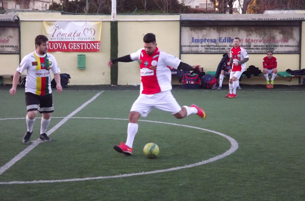 Alla fine, al termine di una partita maratona, spunta fuori il nome di Quartese Internazionale, con gran sofferenza e dopo aver sprecato una quantità industriale di occasioni, tra rimonte, contro rimonte, sorpassi e contropiedi, i bianco-rossi di Raffaele Sarritzu riescono solamente nei minuti finali a piegare del tutto la New Team&Pizzeria il Drago, in soli cinque giocatori ma in partita sino alla fine, nonostante il forte calo fisico accusato nel secondo tempo. È stata una partita altamente emozionante, Quartese Internazionale, pure anch’essa con importanti assenze, si è imposta 6-4 ed è una vittoria di platino perché le consente di ridurre a soli due punti il distacco dall’immediata battistrada, ovvero la vice-capolista Go Go Bar, mentre la New Team vede sfumare a un passo dal traguardo un punto che sarebbe stato meritato e prezioso. Tenuto conto delle tantissime occasioni create e della qualità del gioco espressa, specie nel settore centrale, il successo di Quartese Internazionale è meritato, ma quanta fatica e quanta sofferenza, la New Team infatti ha dato parecchio filo da torcere e nel primo tempo ha brillato andando sul 2-0, proponendo una difesa solida e coperta e un gioco di rimessa efficace e sempre insidioso, reso tale anche dall’iniziale stato confusionale della retroguardia bianco-rossa. Quartese Internazionale ha avuto il merito di credere sempre nella vittoria, nonostante paresse una gara stregata, la difesa ha trovato la quadratura con l’inserimento di Cocco e a cavallo dei due tempi sono arrivati quei gol a lungo tanto inseguiti, dopo i primi venti minuti all’insegna del festival dei gol divorati. Il finale di gara ha riservato colpi di scena e momenti palpitanti, con anche nervosismo e tensione, i bianco-rossi si sono fatti sorprendere da due contropiedi ma con la forza della disperazione hanno piazzato il colpo di reni proprio nel finale. Esce sconfitta a testa altissima la New Team, con soli cinque giocatori impiegati e tante importanti assenze (Mallus e Pillai su tutte), non era proprio possibile fare di più, finchè le energie fisiche li hanno supportati, i giocatori bianco-verdi hanno tenuto molto bene, giocando una gara votata al contenimento e al gioco di rimessa, poi nella ripresa il calo atletico è stato vistoso ma con gran cuore e sacrificio Festa e compagni non hanno mai mollato e sono andati a un passo da un clamoroso pareggio. Passiamo alla cronaca di questa gara scintillante, che ricorderemo a lungo.