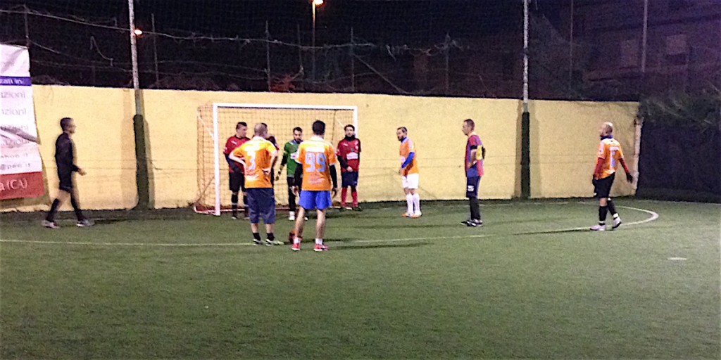Partita tattica, ben giocata da entrambe le squadre. Pochi spazi e tanto possesso palla. In avvio è la squadra Geom.Pinna ad avere le chance più importanti con una doppia occasione per Casu: il numero 8 rosso prima non inquadra la porta con un diagonale dal limite dell’area, poi si fa ipnotizzare da Carta a due passi dalla porta. All’11’ alla prima vera occasione da gol, Gas&Luce passa in vantaggio: azione confusa nell’area avversaria, sulla palla vagante è Paderi il più rapido e fredda Manca. 1-0. Lo stesso Manca evita il raddoppio degli avversari, respingendo le conclusioni di Martini e Paderi. Il primo tempo scorre via senza tante occasioni da gol. La partita si gioca soprattutto a centrocampo. Al 20′ Geom.Pinna trova il pareggio: accelerazione improvvisa di Serpi che vince un contrasto a centrocampo e verticalizza per Rossi, il numero 3 è freddo sotto porta e fa passare la palla sotto le gambe di Carta. 1-1. Nel finale del primo tempo i due portieri salgono in cattedra. Prima Manca è miracoloso sulla conclusione perfetta di Aramu destinata al sette, poi Carta risponde negando per due volte la gioia del gol a Schirru.