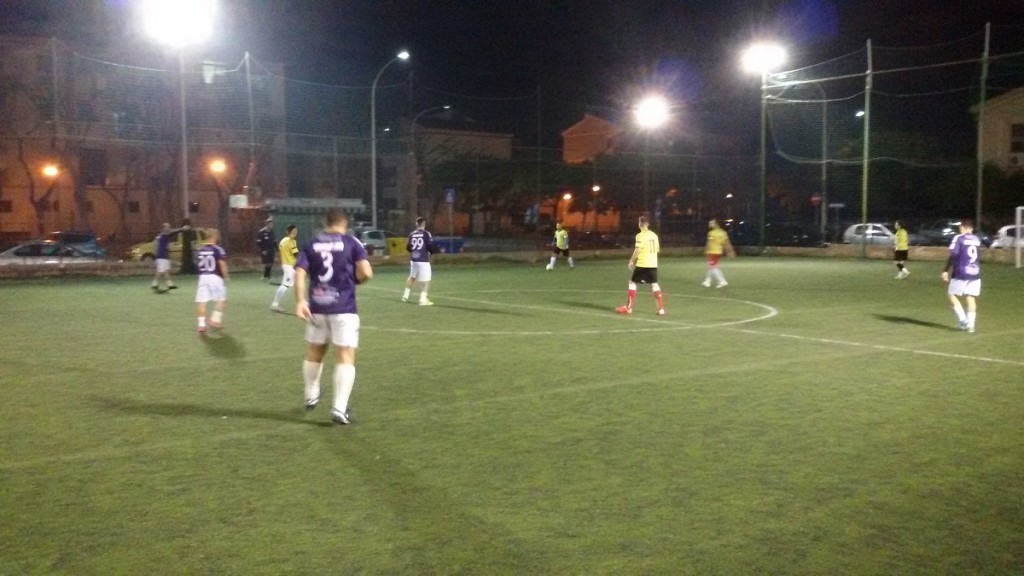 Il primo tempo è dominato da Marras, che ci prova un paio di volte in apertura trovando solo l’esterno della rete. Poco dopo Portas atterra Frau di fronte all’area, giallo per lui e punizione da posizione invitante, ma Cogoni non concretizza. In questa fase iniziale c’è un buon equilibrio e non si vedono grandi azioni, le squadre riescono ad annullarsi a vicenda, salvo quando Marras ha la palla fra i piedi. Il numero 9 con un gran doppio passo salta l’avversario e segna il gol del vantaggio! 1-0. Timida reazione di Edil Line, che gioca ma raramente trova la conclusione pericolosa, stavolta con Pani, ma Farigu gli dice di no. Dall’altra parte è ancora Marras protagonista, ma è troppo egoista e preferisce la soluzione personale ad un comodo passaggio per Pilleri tutto solo vicino alla porta! Pilleri ci prova da solo, intercetta un passaggio sbagliato della difesa verde, punta la porta e con la punta calcia ma la palla scheggia il palo. Più pericolosi nel primo tempo i viola che non corrono grossi pericoli e riescono a mantenere il risultato nonostante la spinta di Edil Line. Ci prova Giotti, la conclusione sembra ottima, ma la sfera finisce addosso al compagno Pani che gli blocca un tiro che forse sarebbe entrato! Ma verso il 18° l’episodio che cambia la partita. Dopo un’interruzione di gioco, Cristian Cambarau ha palla tra i piedi, vede Ambu lontano dai pali e non ci pensa due volte. Gran pallonetto dalla sua trequarti ed è gol! I verdi protestano ma il gol è regolare! 2-0! Ma c’è spazio per la reazione di Edil Line con Tocco che dopo una grande azione calcia al lato! Poi Ambu pur non essendo portiere si supera prima su tiro da lontano di Cambarau F. e poi su Marras. Il primo tempo si chiude con la migliore occasione da gol di Edil Line: bell’appoggio di Cogoni a Frau che di prima intenzione fa partire un tiro a giro, volo di Farigu e porta salvata! Il primo tempo si chiude 2-0!