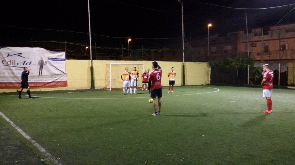 G.C. Edizioni è spigliata e ci prova già in apertura con Galletti, ma M. Cogoni devia con la punta del piede! Poco dopo la difesa arancione salva clamorosamente su Pregio e Frau al 3° minuto prende un palo clamoroso da posizione favorevole! Sarigu spinge ancora e sfiora il gol per G.C. Edizioni ma è ancora bravo M. Cogoni a dirgli di no. Ma a sbloccare il risultato ci pensa Ambu che dalla distanza calcia all’angolino una palla imparabile per Leoni, 2-1! L’inerzia è dalla parte di Go Go Bar e Cogoni A. sfiora ancora il gol sparando alto da ottima posizione! Il n. 7 trova però il gol poco dopo, avventandosi su un pallone in area e mettendo in rete quasi davanti alla linea, è il 3-1! La partita è a senso unico e sembra doversi incanalare verso una facile vittoria, e Leoni si deve superare ancora su Pregio e su una punizione di Perra! Ma come un fulmine a ciel sereno arriva il gol di G.C. Edizioni: punizione di Garau, il n. 99 calcia a angolato a giro ma senza molta potenza, il tiro passa al lato della barriera e si insacca! Evidenti le responsabilità della barriera e del portiere in questa circostanza, 3-2 al 15°! Gli arancioni ci credono e affrontano l’avversario a viso aperto cercando il pareggio, e per poco non lo trovano con Piludu tutto solo ma salva Cogoni! Poco dopo è invece Galletti a trovare il colpo giusto e segna il 3-3 al 17°! I ragazzi di Go Go Bar increduli si buttano in avanti attaccando nervosamente e con poco ordine, mentre G.C. Edizioni cerca di colpire in contropiede con Congiu ma la sua conclusione è troppo debole per impensierire Cogoni. Gli arancioni cercano di fermare Go Go Bar come possono ricorrendo spesso al fallo, tanto che al 20° arriva il primo tiro libero dei rossi: lo calcia Frau ma spara in mezzo alla porta e Leoni para facilmente! Ci provano ancora i rossi con Pregio e Ambu ma la difesa di G.C. Edizioni si oppone in ogni modo possibile, con grandi salvataggi davanti alla porta! Al 24° arriva un altro tiro libero per Go Go Bar, lo calcia Ambu che però spara al lato, incredibile! Gli arancioni sono chiusi nella loro metà campo e difendono il pareggio con le unghie e con i denti, ma rischiano clamorosamente di portarsi in vantaggio all’ultimo secondo con Garau che tutto solo in contropiede calcia sull’esterno della rete! Finisce qui con un 3-3 a dir poco clamoroso, sia per il valore delle squadre in campo, sia per ciò che si è visto in campo, ma onore a G.C. Edizioni che anche soffrendo è riuscita a fare una grande partita difensiva opponendosi in ogni modo possibile alla capolista!