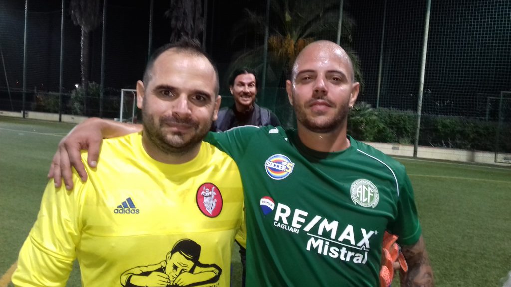 Delogu Legnami vince col brivido il match delle 22, battendo 3-2 Colonia Sarda e ottenendo così i primi 3 punti stagionali, dopo il vantaggio di Musiu i verdi non sfruttano le occasioni per il possibile raddoppio e subiscono il pareggio (comunque meritato) di Trudu, nel finale ben tre gol con Deiana che sorprende Orrù dalla distanza poi Tocco e nel recupero la zampata vincente è di Michele Lai: si gioca alle 22 per la serie A del Cagliari League, Delogu Legnami ha qualche defezione e lo stesso capitano Cabasino non gioca, anche per gli ospiti assenze importanti come Cintura, manca anche il simpatico presidente Robert Lenzen; primo pericolo creato dal corner di Manca su cui Curreli in girata sfiora il palo poi su retropassaggio c’è il gol di Michael Musiu che anticipa la presa di Orrù poi Curreli prova ancora dalla distanza e sfiora il palo di pochi cm, su errato controllo di Spiga si avventa Serrau che mette prontamente a terra e incrocia il destro ma Orrù con un tuffo prodigioso toglie la sfera dall’angolino, grave errore di Deiana che passa il pallone in orizzontale, si avventa Tocco ma Brunetti in uscita salva la situazione poi Orrù fa un altro intervento importante, stavolta di piede, su tiro di Corona. Nella ripresa ci sono maggiori occasioni, Curreli dopo un numero conclude in diagonale ma Brunetti è ben posizionato e respinge poi un diagonale insidioso di Frau chiama orrù ad un’altra bella parata poi gran ripartenza di Curreli , dal fondo di destra serve per Manca ma Brunetti è nuovamente decisivo; su punizione arriva il pareggio, Fabio Trudu che batte dalla trequarti sinistra e col destro infila all’angolino, Curreli subito dopo ha la chance per il sorpasso in spunto personale , dribbling, si accentra e incrocia di collo destro ma Brunetti si supera con una gran parata, Samuele Deiana tenta dall’out di sinistra un tiro non irresistibile ma Orrù viene ugualmente battuto; per i verdi sembra fatta ma al 50′ arriva il gol di Marco Tocco che in elevazione sovrasta Samuele Lai e batte si testa Brunetti: i padroni di casa non mollano e nel recupero guadagnano una punizione sul settore di destra, palla al centro, mischia e Michele Lai è il più rapido e insacca.