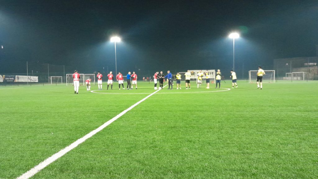 Nonostante un clima particolarmente freddo e umido partono subito molto forte I ragazzi di MM United impegnando più volte Siriu fino al gol del vantaggio al quarto minuto, Farris appoggia centralmente verso Ferreri che calcia ottimamente da fuori area di prima intenzione, vantaggio dei rossi immediato. Il pareggio RM Impianti non si fa attendere e solo tre minuti più tardi bisogna registrare il gol del pareggio, assist di Locci che serve Bagatti libero sul secondo palo con l’attaccante dei gialli che deve solo insaccare, siamo quindi sul punteggio di uno pari. Al decimo minuto arriva il gol della rimonta RM Impianti, rimonta che avviene con la punizione di Masala del vertice sinistro del campo, il suo tiro rasoterra sorprende un Pusceddu non perfetto in copertura sul primo palo. Il pareggio da parte di MM United è a dir poco fulmineo, alla punizione di Masala risponde quella di Ferreri, il suo tiro con traiettoria a parabola è infatti imprendibile, nulla può fare Siriu, è quindi 2-2 quando siamo solo al dodicesimo minuto di un match già scoppiettante. Al minuto 17 si rivede MM United con Ferreri che prova a rendere il favore a Farris ma la conclusione di quest’ultimo termina alta. Poco dopo occasione anche per RM Impianti con il calcio di punizione di Mandas ma sulla traiettoria si fa trovare Lifoda che di tacco devia in corner. Al tramonto del primo tempo ecco il nuovo vantaggio per i gialli, segna dalla lunga distanza Piludu che sorprende Pusceddu con un tiro non imprendibile ma comunque velenoso e alquanto inaspettato. Poco prima del duplice fischio arriva la nuova risposta dei rossi, dopo una serie di rimpalli si fa trovare pronto Farris che a livello dell’area piccola insacca da grande opportunista per la rete del 3-3. Finisce quindi in parità un primo tempo ricco di emozioni e ribaltamenti di fronte condito da ben sei reti, ci sono tutti i presupposti per una seconda frazione altrettanto intensa.