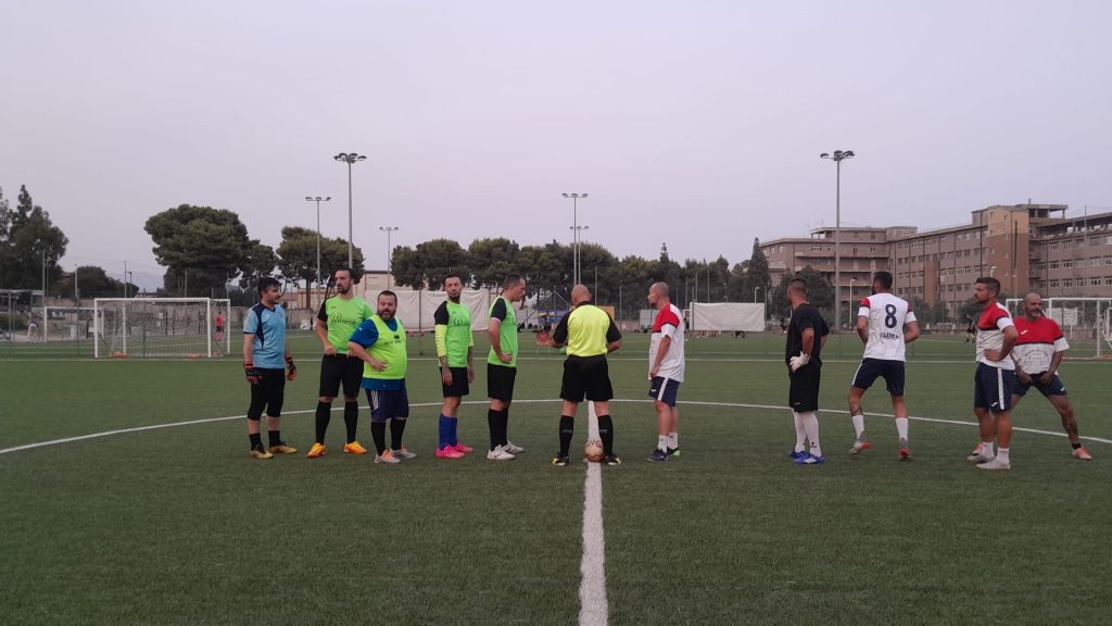 Primi minuti di partita apparentemente equilibrati, entrambe le compagini si studiano ed entrambe le compagini non riescono a creare azioni da gol effettivamente nitide. La prima vera chance dell’incontro è in favore delle Vecchie Glorie, cross dalla destra dove Stara va in contrasto con Adamu, il pallone sembra che possa entrare in rete ma Poddesu salva tutto. Poco dopo ci prova dal limite Murgia, gol sfiorato con palla che tocca la traversa. I bianchi insistono sempre di più, ci prova da dentro l’area anche Stara, Garau respinge con i piedi. I verdi rispondono con un bel tiro di Scarpellini, palla alta di poco oltre la traversa. Arrivati ormai al minuto 18 il punteggio rimane inchiodato sullo 0-0, da annotare in questi minuti una buona occasione per Puggioni, l’attaccante ben servito da Murgia non riesce a far male da dentro l’area. Poco più tardi si rivede Puggioni, il 21 scarica un destro micidiale dalla distanza, tiro potentissimo che colpisce in pieno la traversa. Nei minuti finali della prima metà da annotare una buona occasione per Scarpellini, il 15 dei verdi sfiora ill vantaggio con un gran tiro dalla distanza, palla fuori di poco. Questa prima parte di gara termina dunque sul punteggio di 0-0, match tutto sommato equilibrato ma la fortuna non gira comunque dalla parte delle Vecchie Glorie, sono infatti ben due le traverse colpite dai giocatori in bianco in questi primi 25 minuti.
